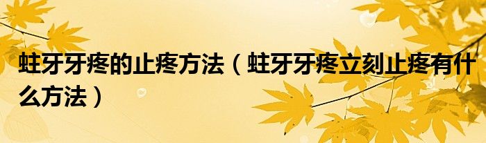蛀牙牙疼的止疼方法(蛀牙牙疼立刻止疼有什么方法)
