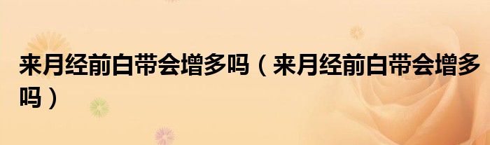 1、一般情况下,女性来月经前白带会比较多。是女性月经前雌孕激素分泌变化引起的正常生理现象。但需要注意的是,如果月经前不仅白带增多,还伴有白带变黄或异味,则是一种病理现象,可能是宫颈炎或阴道炎引起的。在这种情况下,需要检测白带常规才能明确诊断。