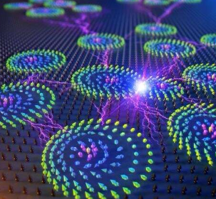 Skyrmions 是纳米级磁涡流,一种由超低电流驱动的准粒子。作为准粒子,它们没有实际质量,但形成的周期性图案非常类似于晶体或晶格内原子的对称排列。