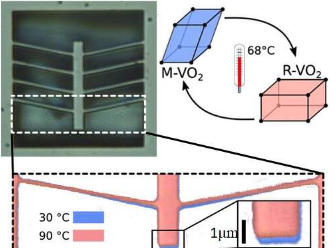 “在 68°C 时,氧化钒经历了急剧的单斜向金红石相变,这在微型技术中非常有用,”合著者 Teruo Kanki 解释说。“我们使用人字形(锯齿)器件几何结构来放大晶体的面内弯曲,并开辟新的应用。”