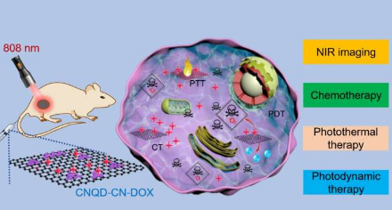 “石墨氮化碳量子点和二维碳基纳米材料的结合,由于其优异的性能,包括光学特性、高效的光热转换能力和近红外(NIR)诱导的单线态氧产生,”设计该项目的王辉说。