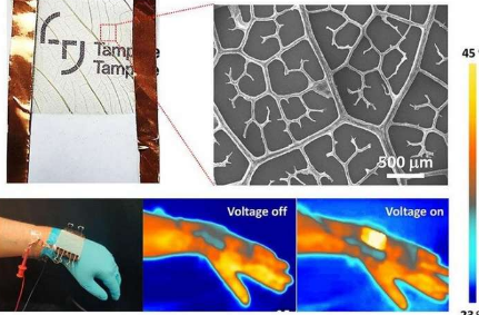 芬兰坦佩雷大学的一组研究人员从植物叶子中开发出一种可生物降解、透明、灵活且速效的热疗贴片。该贴片与灵活的电子应用兼容。植物材料被用来减少电子废物的数量。
