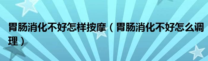胃肠消化不好怎样按摩(胃肠消化不好怎么调理)