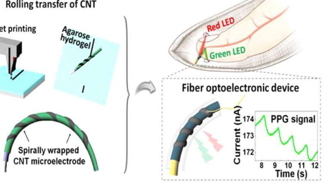 光电器件通常使用半导体、电极和绝缘体层构成;它们的性能受电极尺寸和结构的影响很大。纤维的电子元件为电子纺织品需要在薄的,柔韧的线程来制造; 由于这些器件不能比直径为几微米的线宽,因此提高此类纤维电子元件的性能是一个挑战。然而,韩国科学家团队在开发出克服这些限制的新技术后一直受到关注。