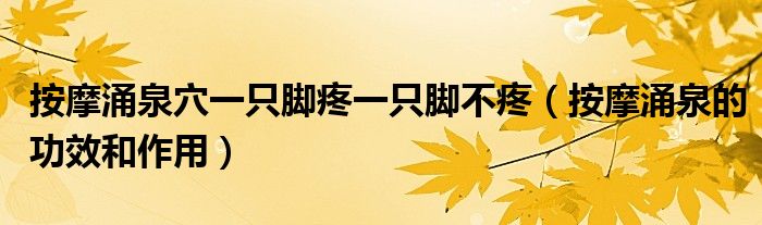 大家好,linda来为大家解答以上的问题。按摩涌泉穴一只脚疼一只脚不疼,按摩涌泉的功效和作用很多人还不知道,现在让我们一起来看看吧!
