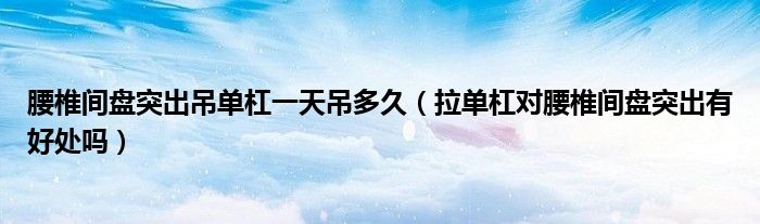 大家好,linda来为大家解答以上的问题。腰椎间盘突出吊单杠一天吊多久,拉单杠对腰椎间盘突出有好处吗很多人还不知道,现在让我们一起来看看吧!
