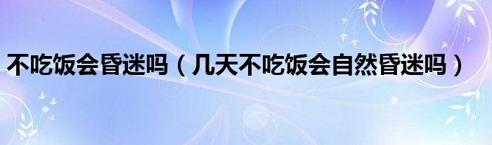 大家好,linda来为大家解答以上的问题。不吃饭会昏迷吗,几天不吃饭会自然昏迷吗很多人还不知道,现在让我们一起来看看吧!