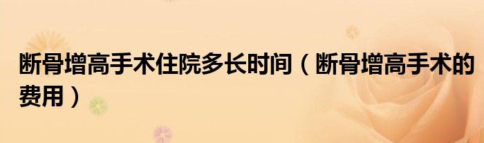 大家好,linda来为大家解答以上的问题。断骨增高手术住院多长时间,断骨增高手术的费用很多人还不知道,现在让我们一起来看看吧!