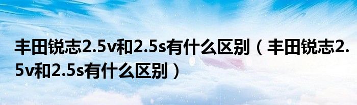 大家好,阳阳来为大家讲解下。丰田锐志2.5v和2.5s有什么区别,丰田锐志2.5v和2.5s有什么区别很多人还不知道,现在让我们一起来看看吧!