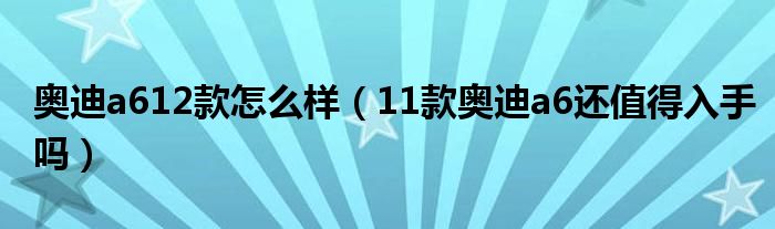 大家好,阳阳来为大家讲解下。奥迪a612款怎么样,11款奥迪a6还值得入手吗很多人还不知道,现在让我们一起来看看吧!