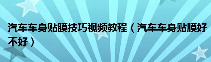 大家好,阳阳来为大家讲解下。汽车车身贴膜技巧视频教程,汽车车身贴膜好不好很多人还不知道,现在让我们一起来看看吧!