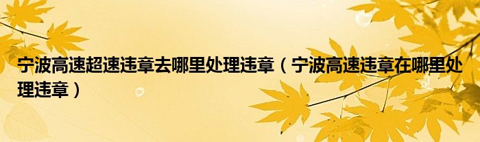 大家好,阳阳来为大家讲解下。宁波高速超速违章去哪里处理违章,宁波高速违章在哪里处理违章很多人还不知道,现在让我们一起来看看吧!