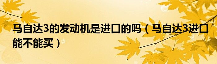 大家好,阳阳来为大家讲解下。马自达3的发动机是进口的吗,马自达3进口能不能买很多人还不知道,现在让我们一起来看看吧!