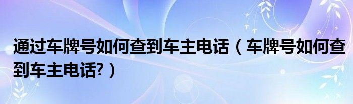 通过车牌号如何查到车主电话(车牌号如何查到车主电话?)