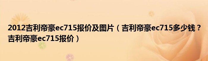 2012吉利帝豪ec715报价及图片(吉利帝豪ec715多少钱?吉利帝豪ec715报价)