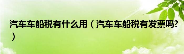 大家好,小美来为大家解答以上问题。汽车车船税有什么用,汽车车船税有发票吗?很多人还不知道,现在让我们一起来看看吧!