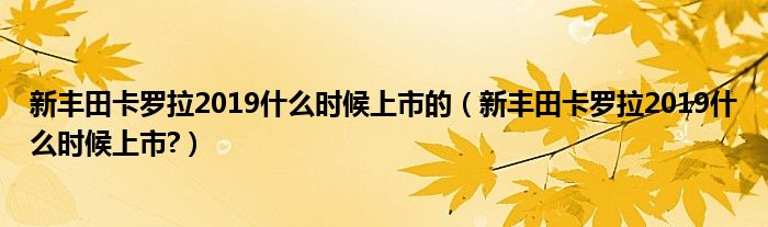 大家好,小美来为大家解答以上问题。新丰田卡罗拉2019什么时候上市的,新丰田卡罗拉2019什么时候上市?很多人还不知道,现在让我们一起来看看吧!