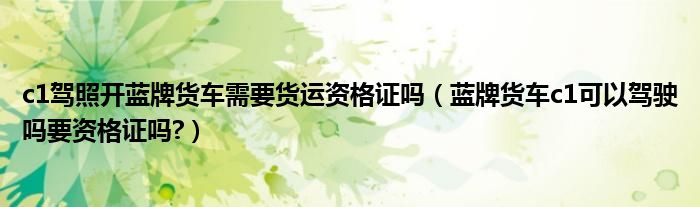 蓝色货车c1可以开,需要资格证:你说的资格证是道路运输资格证吗?如果是,蓝色货车的道路运输证是营运性质的,所以要求有资格证,非营运的不需要资格证。