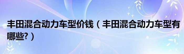 大家好,小美来为大家解答以上问题。丰田混合动力车型价钱,丰田混合动力车型有哪些?很多人还不知道,现在让我们一起来看看吧!