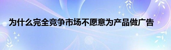 为什么完全竞争市场不愿意为产品做广告