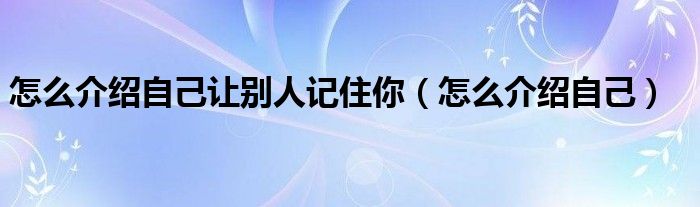 关于怎么介绍自己让别人记住你,怎么介绍自己这个很多人还不知道,今天菲菲来为大家解答以上的问题,现在让我们一起来看看吧!