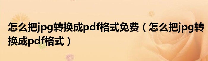 关于怎么把jpg转换成pdf格式免费,怎么把jpg转换成pdf格式这个很多人还不知道,今天菲菲来为大家解答以上的问题,现在让我们一起来看看吧!
