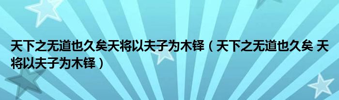 关于天下之无道也久矣天将以夫子为木铎,天下之无道也久矣 天将以夫子为木铎这个很多人还不知道,今天菲菲来为大家解答以上的问题,现在让我们一起来看看吧!
