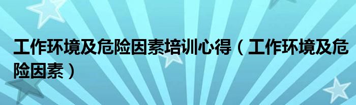 关于工作环境及危险因素培训心得,工作环境及危险因素这个很多人还不知道,今天菲菲来为大家解答以上的问题,现在让我们一起来看看吧!