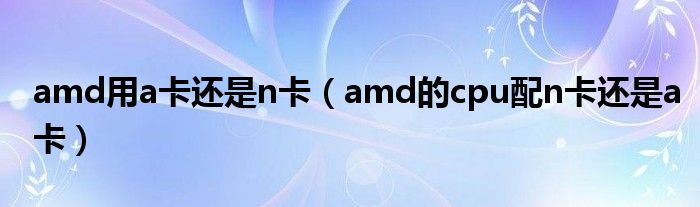 amd用a卡还是n卡(amd的cpu配n卡还是a卡)