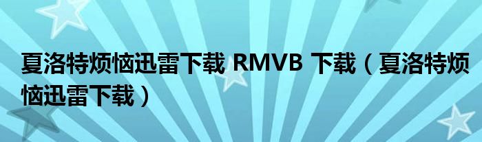 夏洛特烦恼迅雷下载 RMVB 下载(夏洛特烦恼迅雷下载)