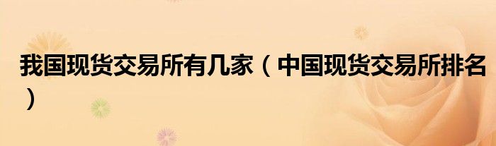 关于我国现货交易所有几家,中国现货交易所排名这个很多人还不知道,今天菲菲来为大家解答以上的问题,现在让我们一起来看看吧!