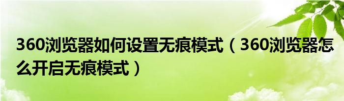 360浏览器如何设置无痕模式(360浏览器怎么开启无痕模式)
