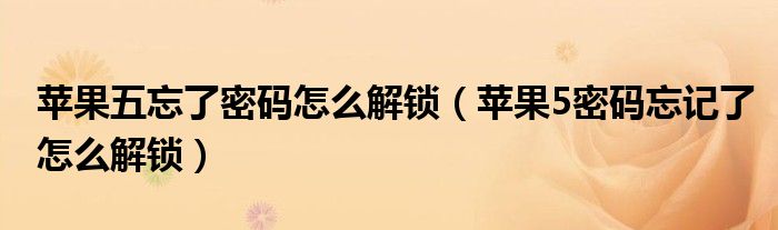 关于苹果五忘了密码怎么解锁,苹果5密码忘记了怎么解锁这个很多人还不知道,今天菲菲来为大家解答以上的问题,现在让我们一起来看看吧!