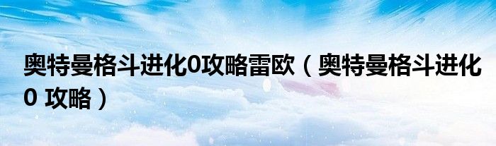 关于奥特曼格斗进化0攻略雷欧,奥特曼格斗进化0 攻略这个很多人还不知道,今天菲菲来为大家解答以上的问题,现在让我们一起来看看吧!