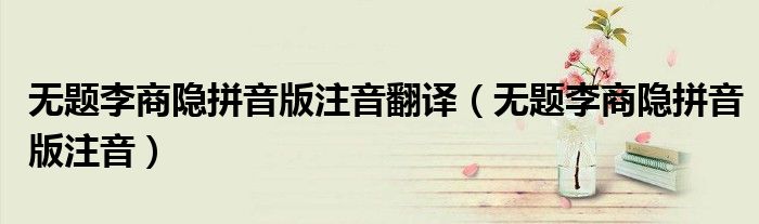 关于无题李商隐拼音版注音翻译,无题李商隐拼音版注音这个很多人还不知道,今天菲菲来为大家解答以上的问题,现在让我们一起来看看吧!