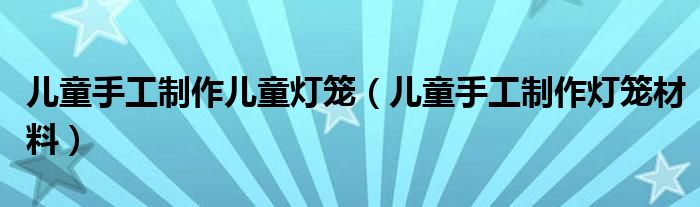 关于儿童手工制作儿童灯笼,儿童手工制作灯笼材料这个很多人还不知道,今天菲菲来为大家解答以上的问题,现在让我们一起来看看吧!
