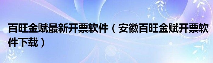 百旺金赋最新开票软件(安徽百旺金赋开票软件下载)