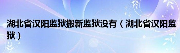 关于湖北省汉阳监狱搬新监狱没有,湖北省汉阳监狱这个很多人还不知道,今天菲菲来为大家解答以上的问题,现在让我们一起来看看吧!