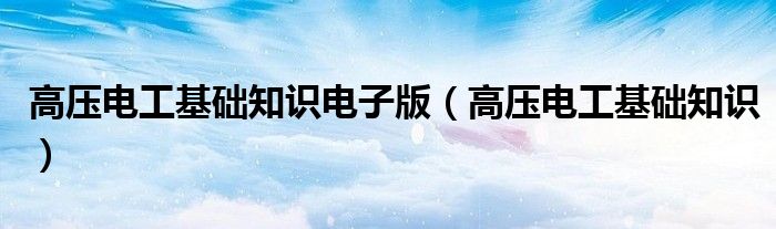 关于高压电工基础知识电子版,高压电工基础知识这个很多人还不知道,今天菲菲来为大家解答以上的问题,现在让我们一起来看看吧!
