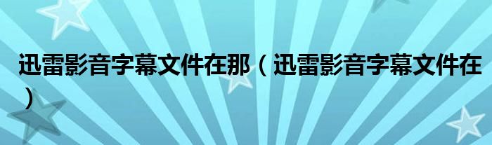 关于迅雷影音字幕文件在那,迅雷影音字幕文件在这个很多人还不知道,今天菲菲来为大家解答以上的问题,现在让我们一起来看看吧!