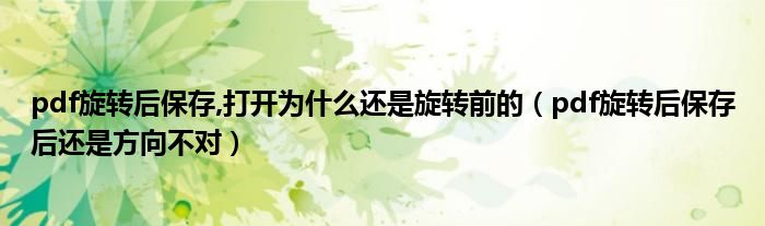 pdf旋转后保存,打开为什么还是旋转前的(pdf旋转后保存后还是方向不对)