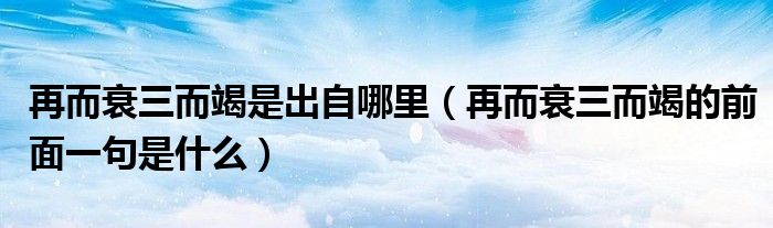 关于再而衰三而竭是出自哪里,再而衰三而竭的前面一句是什么这个很多人还不知道,今天菲菲来为大家解答以上的问题,现在让我们一起来看看吧!