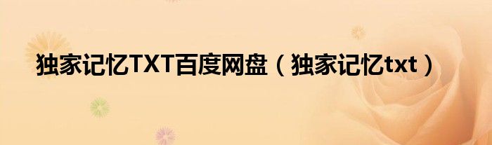 关于独家记忆TXT百度网盘,独家记忆txt这个很多人还不知道,今天菲菲来为大家解答以上的问题,现在让我们一起来看看吧!