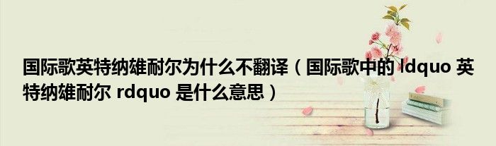 关于国际歌英特纳雄耐尔为什么不翻译,国际歌中的 ldquo 英特纳雄耐尔 rdquo 是什么意思这个很多人还不知道,今天菲菲来为大家解答以上的问题,现在让我们一起来看看吧!