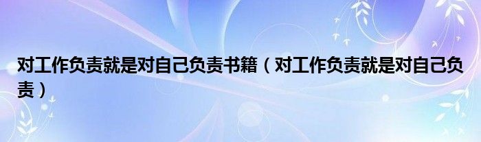 关于对工作负责就是对自己负责书籍,对工作负责就是对自己负责这个很多人还不知道,今天菲菲来为大家解答以上的问题,现在让我们一起来看看吧!