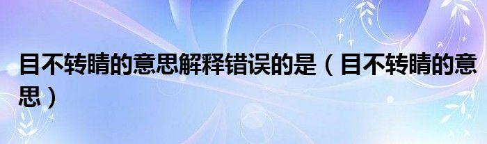 关于目不转睛的意思解释错误的是,目不转睛的意思这个很多人还不知道,今天菲菲来为大家解答以上的问题,现在让我们一起来看看吧!