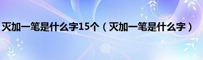 关于灭加一笔是什么字15个,灭加一笔是什么字这个很多人还不知道,今天菲菲来为大家解答以上的问题,现在让我们一起来看看吧!