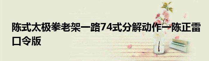 关于陈式太极拳老架一路74式分解动作一陈正雷口令版这个很多人还不知道,今天菲菲来为大家解答以上的问题,现在让我们一起来看看吧!