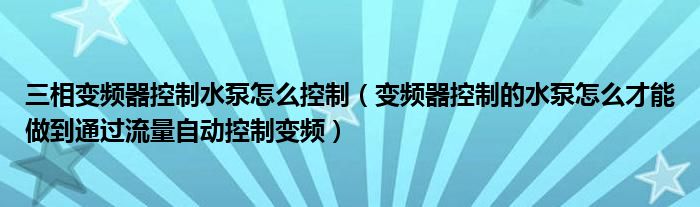 三相变频器控制水泵怎么控制(变频器控制的水泵怎么才能做到通过流量自动控制变频)