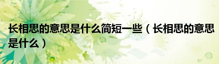 关于长相思的意思是什么简短一些,长相思的意思是什么这个很多人还不知道,今天菲菲来为大家解答以上的问题,现在让我们一起来看看吧!